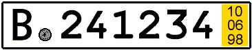 Kurzzeitkennzeichen (gelb) für Probe- und Überführungsfahrten. Ab dem 01.05.1998 wurde für den Bürger das Verfahren vereinfacht: Die bisherige oft umständliche Rückgabepflicht des roten Kennzeichens an die Zulassungsstelle entfällt zu diesem Zeitpunkt. Ausserdem wurden die Kostengegenüber den bisherigen Kennzeichen gesenkt. Das Kurzzeitkennzeichen enthält ein von der Zulassungsstelle festgesetztes Ablaufdatum. Der Ablauftag ist auf dem Kennzeichen durch drei untereinander stehende, geld unterlegte, Zahlen - eingeprägt auf der rechten Kennzeichenseite ersichtlich.