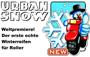Neu ist von der Firma Hosteletter der “IRC URBAN SNOW”. Wo mit Sommerreifen nichts mehr geht, zieht der IRC nach Feststellung der Zeitschrift “Roller Spezial” ( 6/03 ) ruhig und spurtreu seine Bahn. Die ausgefeilte Lamellenkonstruktion bringe auf Schnee deutliche Vorteile, die mit etwas indifferentem Fahrverhalten auf trockenem Asphalt erkauft würden. Lt. Hersteller ist der Urban Snow der erste Winterreifen für Roller mit Lamellen-Technologie. Die aus dem Automobilreifenbau bekannte und bestens bewährte Lamellentechnik wurde weiter entwickelt und für die hohen Anforderungen im Rollereinsatz optimiert. Gleiches gilt für die ganz spezielle Gummimischung mit grossem Silicaanteil. Im Vergleich zu konventionellen Rollerreifen bietet der neue Urban Snow von IRC und Hostettler AG insbesondere im Winter zahlreiche Vorteile: Beste Traktion auf Schnee und Eis, optimaler Grip bei Nässe, beste Fahreigenschaften auf trockener Strasse, hoher Fahrkomfort und überdurchschnittliche Kilometerleistung ( Text/Bild : pneu-service.ch )