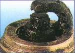 Ausbrüche am Isolatorfuss Ursache: Schlag, Fall oder Druck auf die Mittelelektrode, klopfende Verbrennung, Öl im Brennraum. Auswirkungen: Zündaussetzer, Zündfunke springt an Stellen über, die nicht durch Frischgemisch erreicht werden. Bei überlanger Betriebsdauer kann der Isolator gesprengt werden. Abhilfe: Zündkerzen ersetzen. |