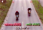In einem Versuch mit zwei routinierten Stuntmen wurde der Bremsweg einer Maschine ohne ABS und einem Motorrad mit ABS verglichen :